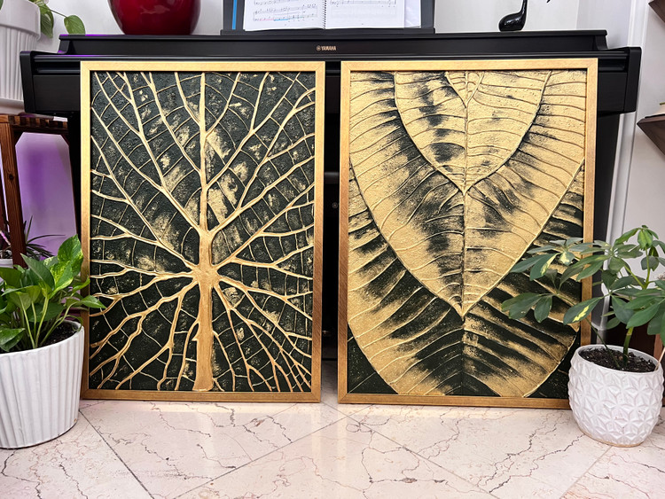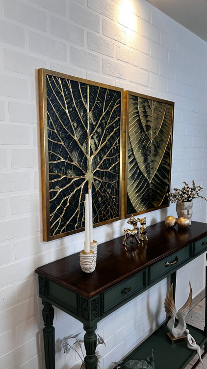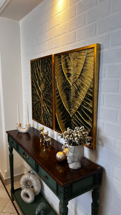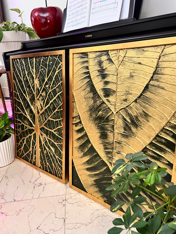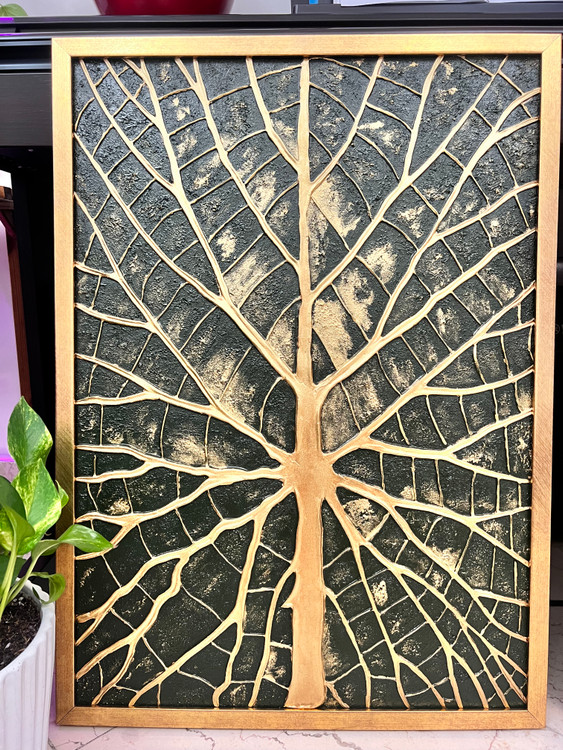 تابلوی پینترستی برجسته ی درخت و برگ در زمینه برجسته باقاب طلایی