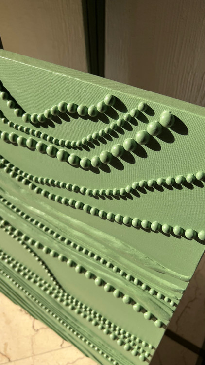 برجسته شده با مواد با کیفیت هنری و ساخت مرواریدهای غلطان و یکدست که با خمیر دستساز لیپان اجرا شده که با دوام و مستحکم با ظاهری پینترستیست.
