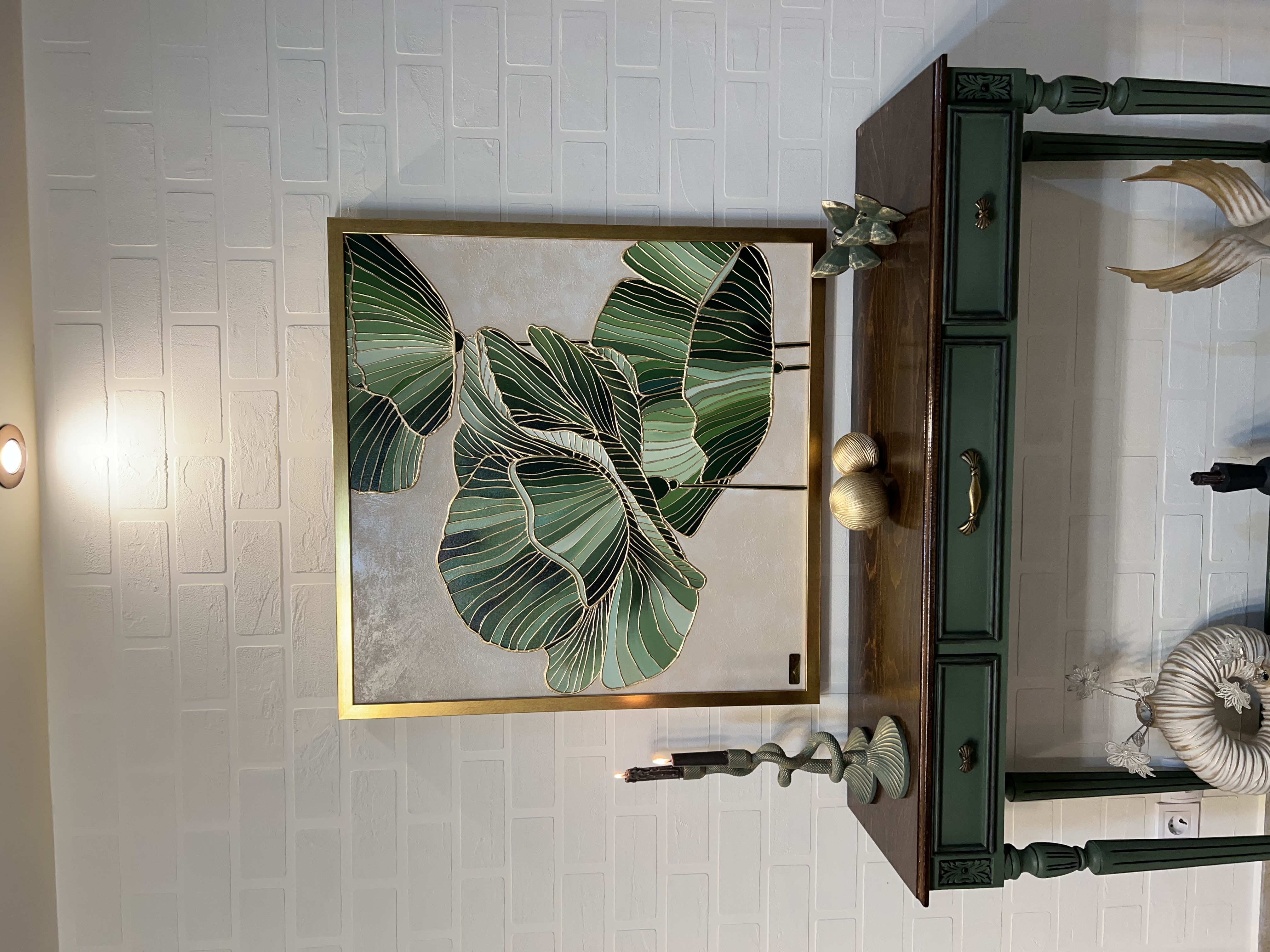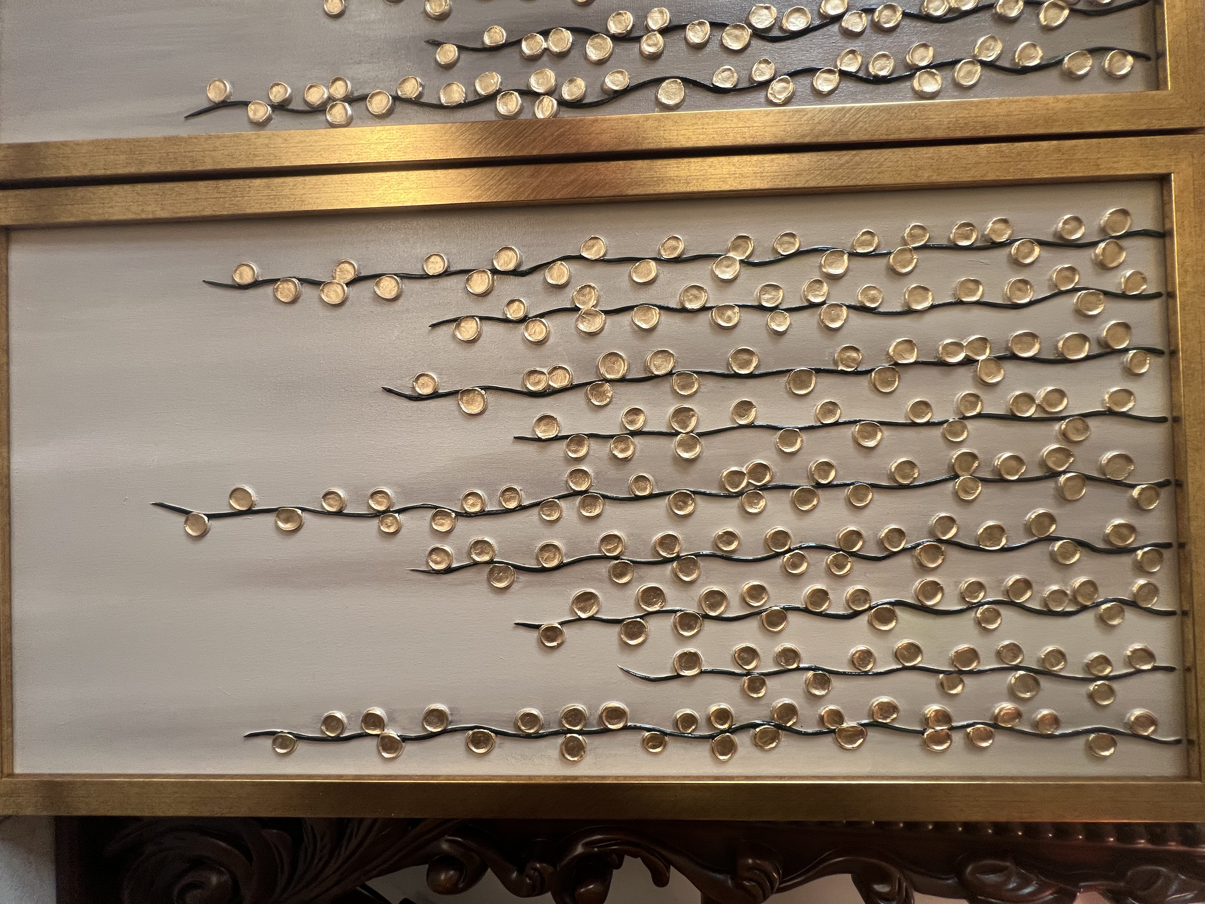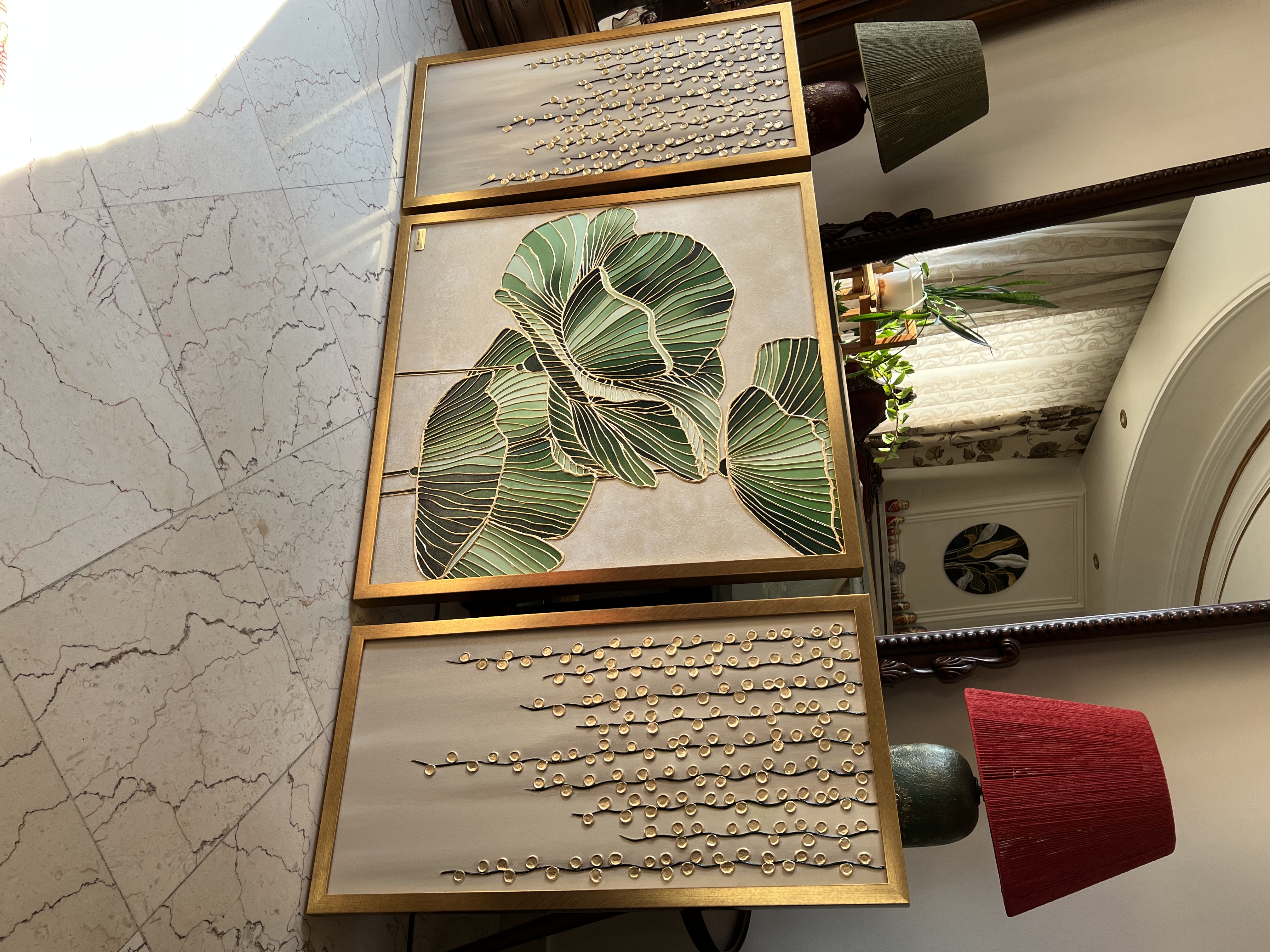 این تابلو با تکنیک رنگ روغن و به شکل برجسته و سه تکه اجرا شده و همونطور که در عکسها میبینید بصورت جداگانه هم قابل تهیه و استفاده ست.