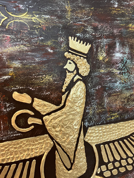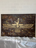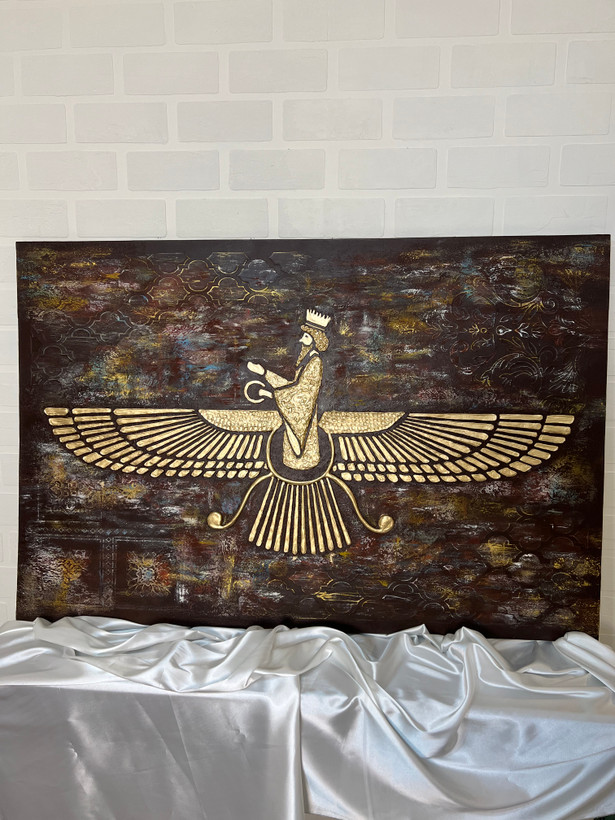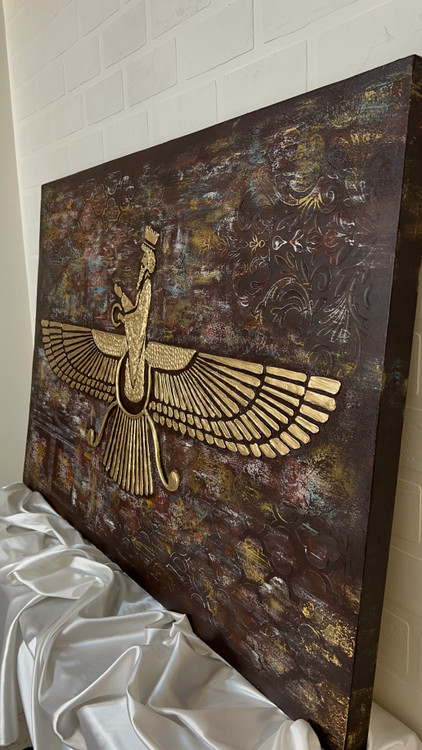 برجسته سازی تابلوی فروهر کاملا کاردست است و شابلون نیست. همونطور که در تصویر می بینید برجسته سازی بسیار حجیم است.