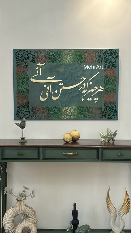 تابلوی خط برجسته ی شعر هر چیز که در جستن آنی، آنی