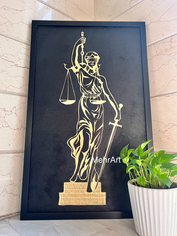 تابلوی برجسته ی بانوی عدالت صفر تا دست کار دست ( برجسته سازی اینکار دستی انجام شده و کار شابلون نیست)
