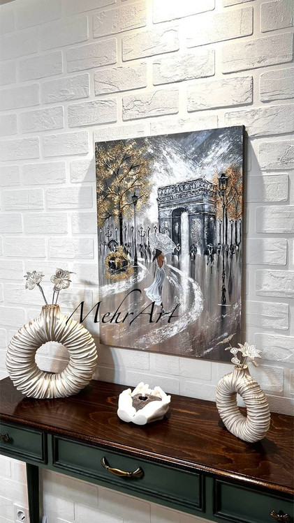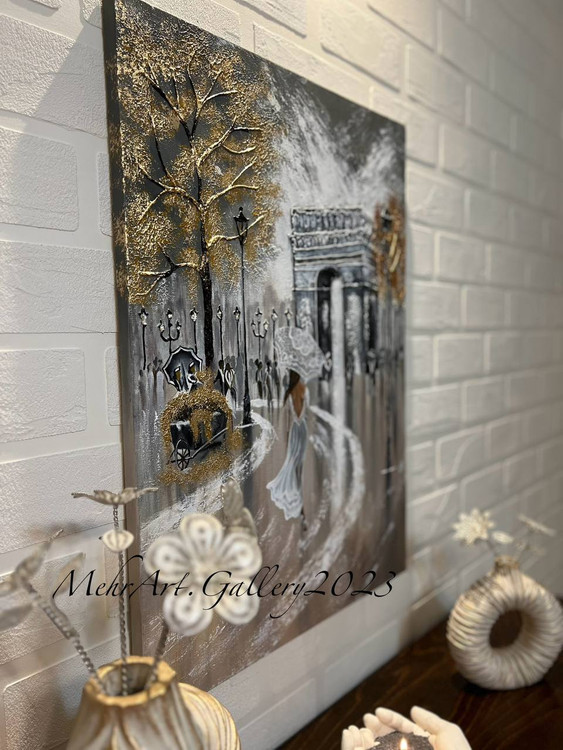 تابلو دکوراتیو شانزهلیزه مهرآرت نقاشی برجسته کاردست